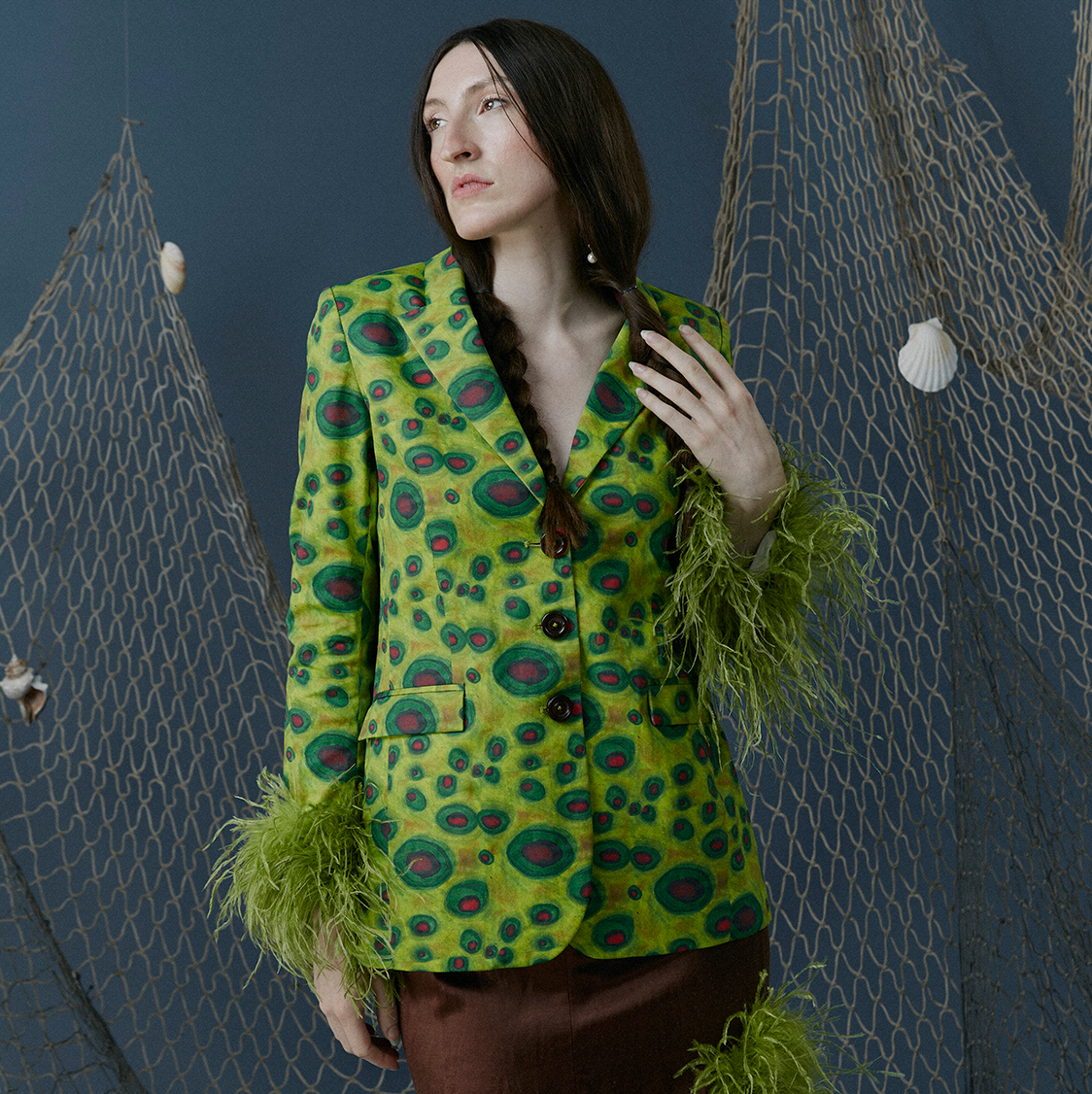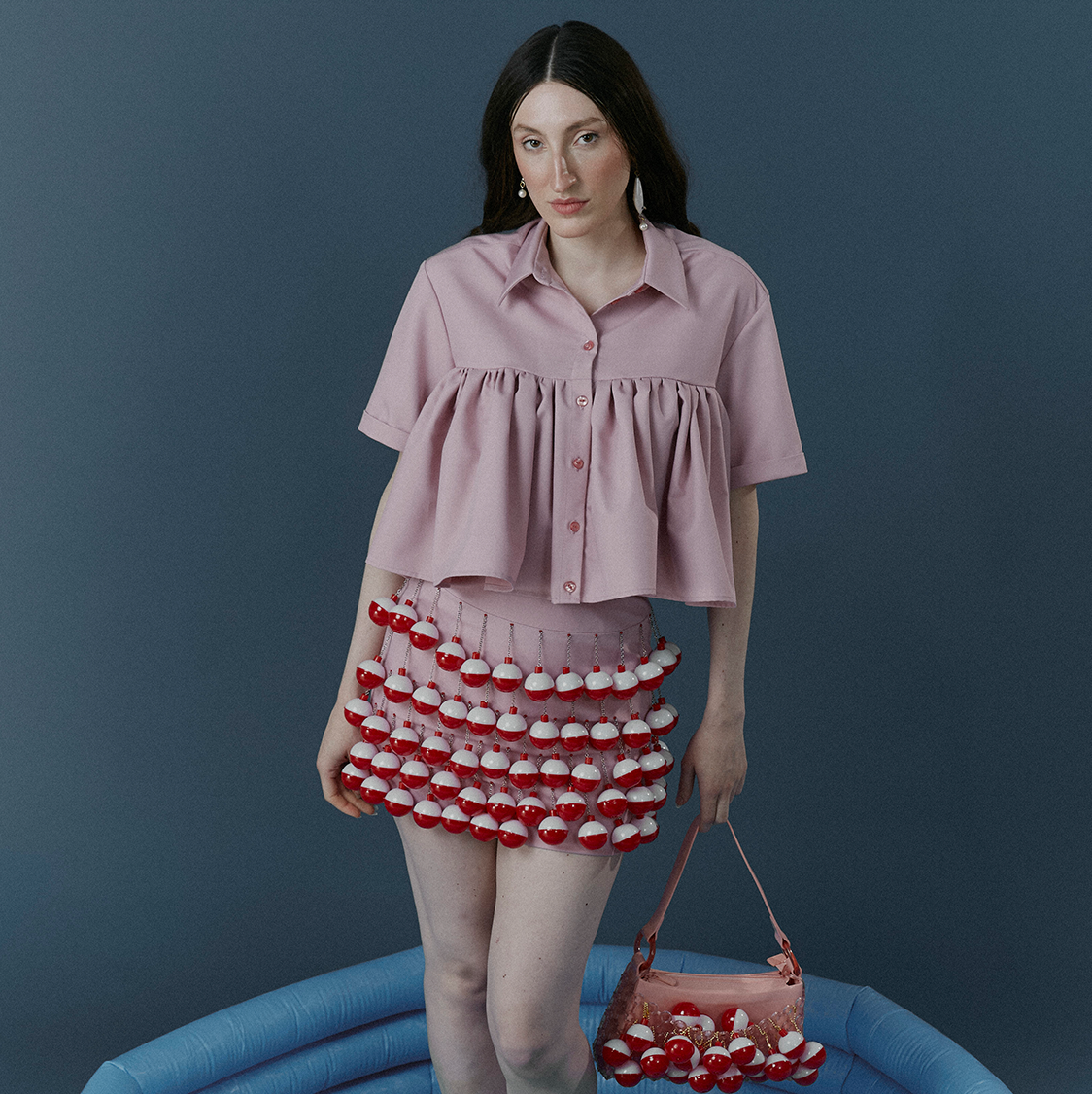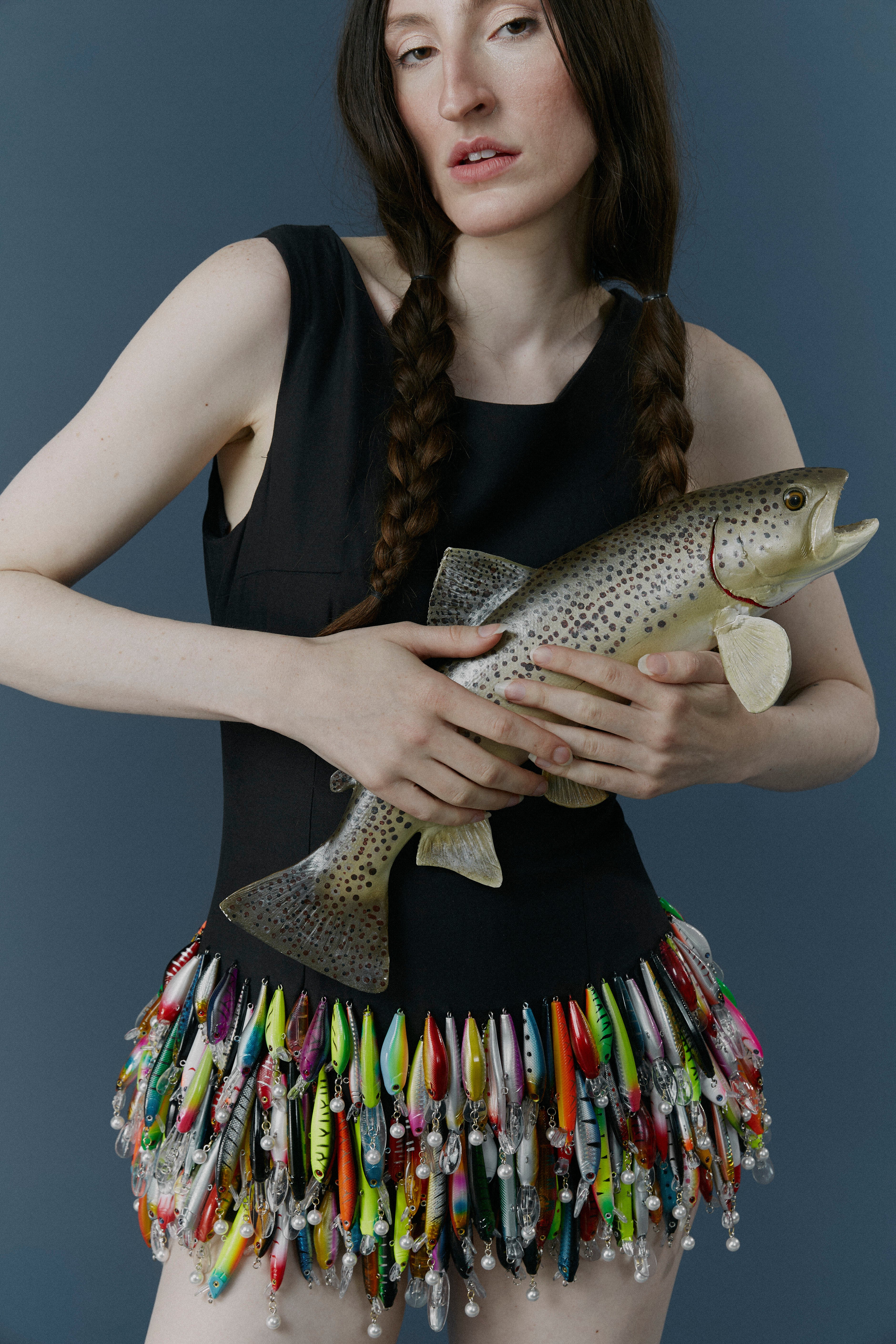 This collection is filled with warm, earthy colors, nostalgic plaids, and colorful prints, each telling the story of a day at the lake. Lures reimagined as beads and feathers evoking the breeziness of ferns accent soft tailoring and relaxed silhouettes, creating a sense of balance and ease. Luxurious knits paired with pleating and button-downs subtly reference the uniform MELKE has become known for. And as always, color brings to life the pleasure of whimsical design.